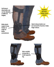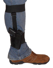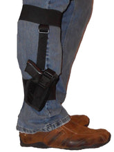 Ankle Holsters are made to fit easily under most pant legs. This holster is locked into place with heavy duty elastic at the top and bottom. This slim holster is very concealable either on the inside or outside of the leg.